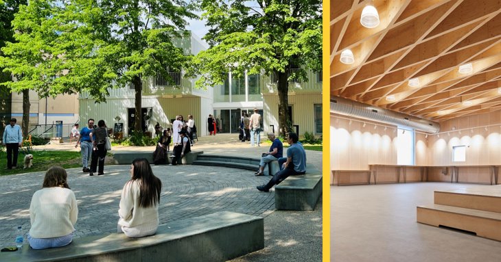 The main event space offers flexible capacity for 150 seated or 200 standing guests, with excellent acoustics thanks to the innovative wooden design.