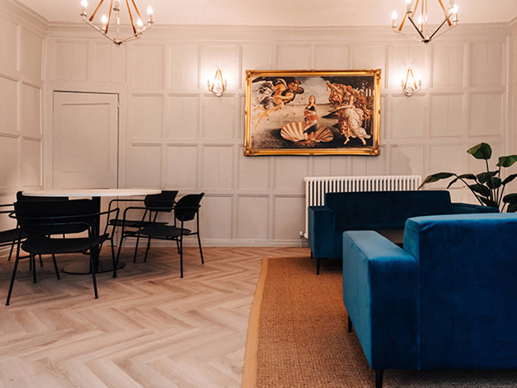 The ground floor now houses a large common room with flexible furniture arrangements that can be adapted to suit small and large groups, as well as a separate café serving fresh coffee, hot and cold drinks and homemade food.