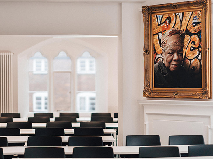 As well as a tongue-in-cheek portrait of the school’s founder, King Henry VIII, adorned with shades and a gold medallion, the collection includes modern reinterpretations of classic works of art – including a version of Boticelli’s The Birth of Venus featuring Paralympian Ellie Simmonds, as well as portraits of Maya Angelou, Alan Turing and Malala Yousafzai.