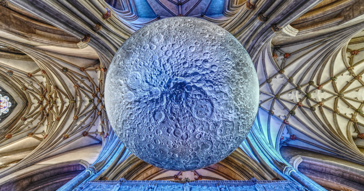 This interstellar exhibition from artist Luke Jerram, displays a 3D replica of the lunar sphere, internally lit and floating amidst the gothic arches in the Abbey's vast interior, bathing the space in a soft lunar glow.