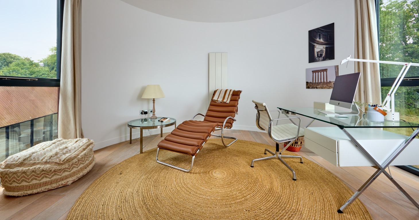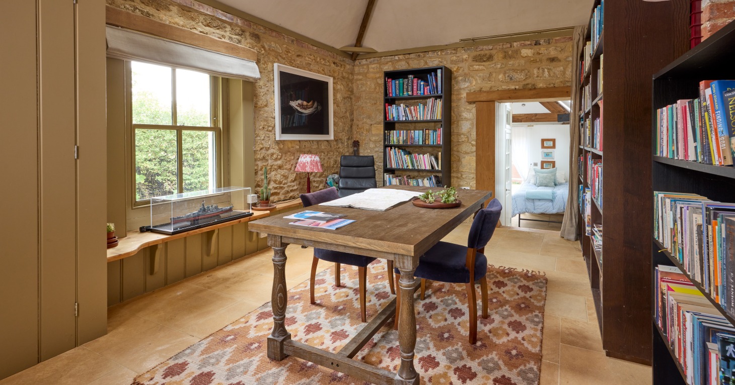 And at the front of the property, there's a self-contained office or writing room with its own log burner and space to create a home library.