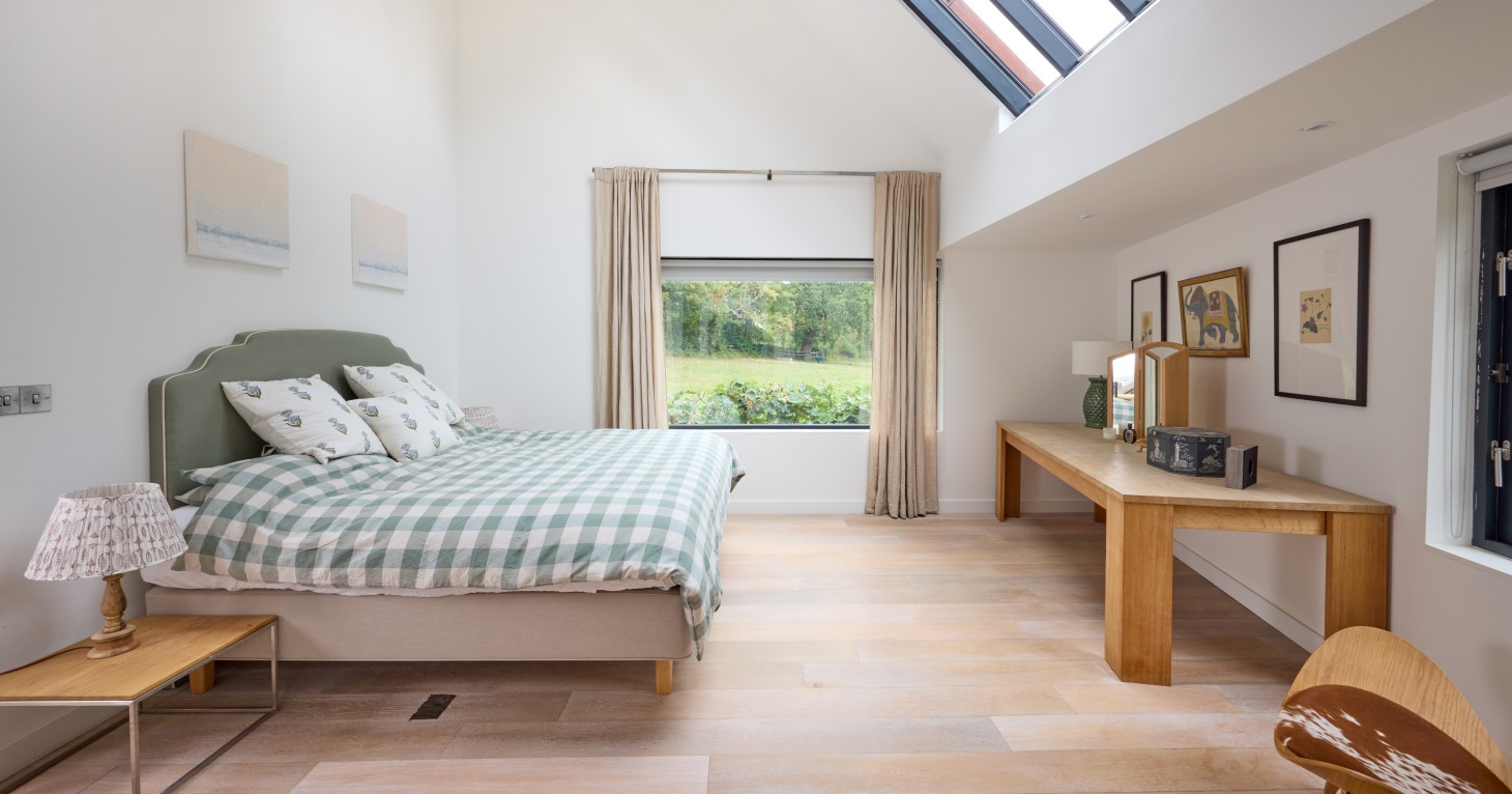 The ground floor principal suite, accented by a picture-window framing sweeping countryside views, is another notable highlight.