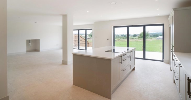 Crimperland Close offers far reaching rural views and an expanse of light airy space with deluxe modern country interior design.