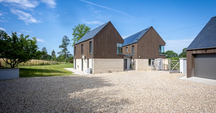 The property's exterior complements the surrounding environment, with its timber-effect Millboard cladding, Cotswold stone slips and large sleek highly efficient triple glazed windows, allowing for plenty of natural light and access to stunning views.