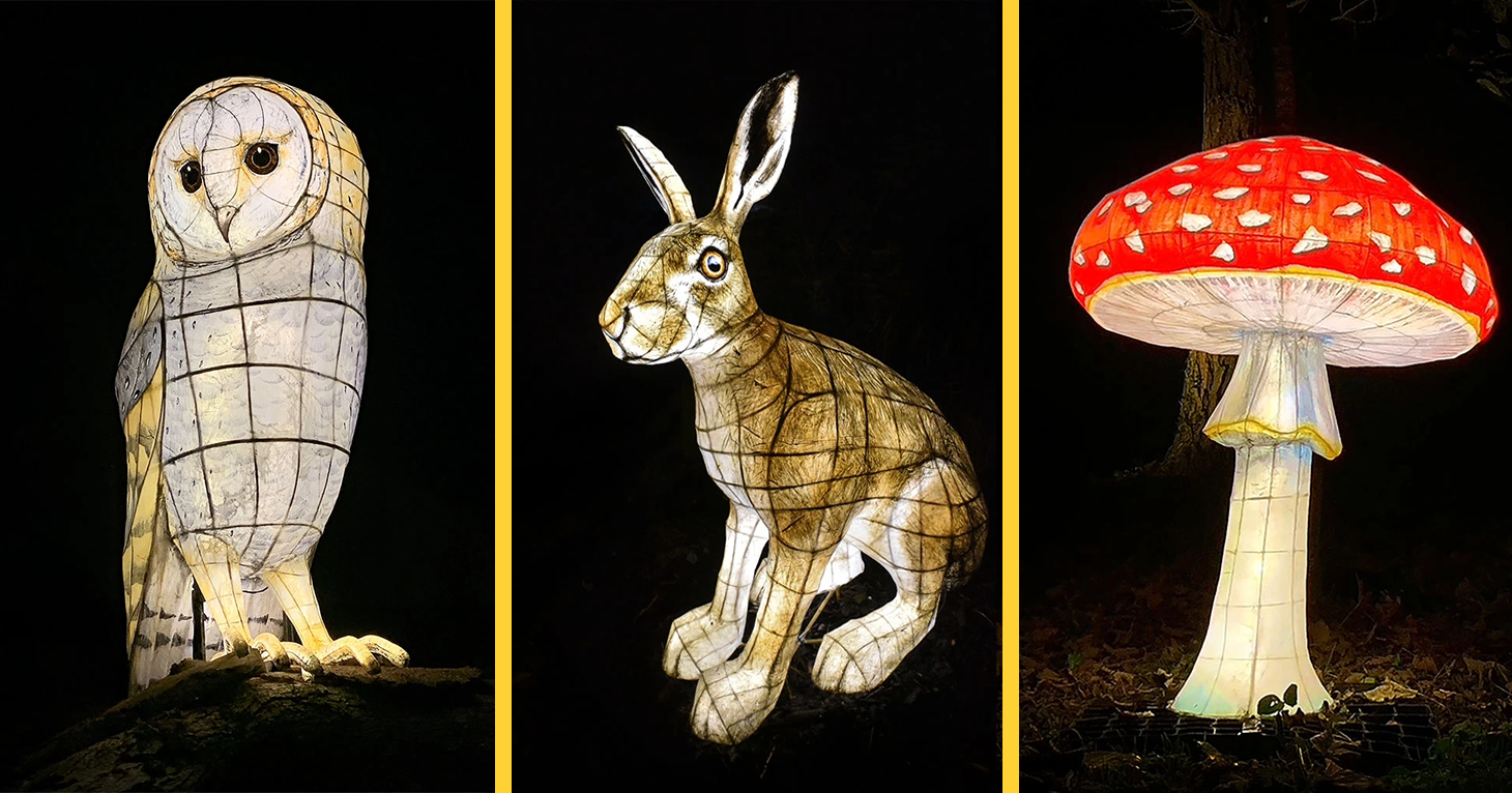 Wander through a shimmering firefly tunnel, encounter giant glow-in-the-dark insects and spot owls, mice and kingfishers brought to life with lantern artistry by The Lantern Company.