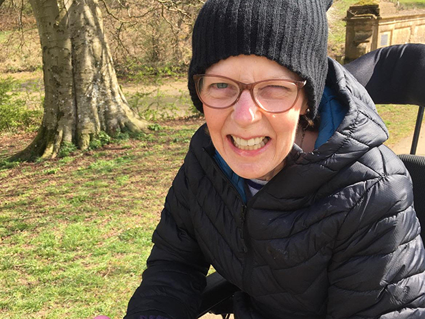 Despite losing the ability to walk and talk due to Motor Neurone Disease six years ago, Bel Cornwell has raised over £7,000 for Sue Ryder Leckhampton Court Hospice in the last year, battling snow, ice, freezing temperatures and tightening lockdown restrictions to clock up over 100 miles in her powered wheelchair.