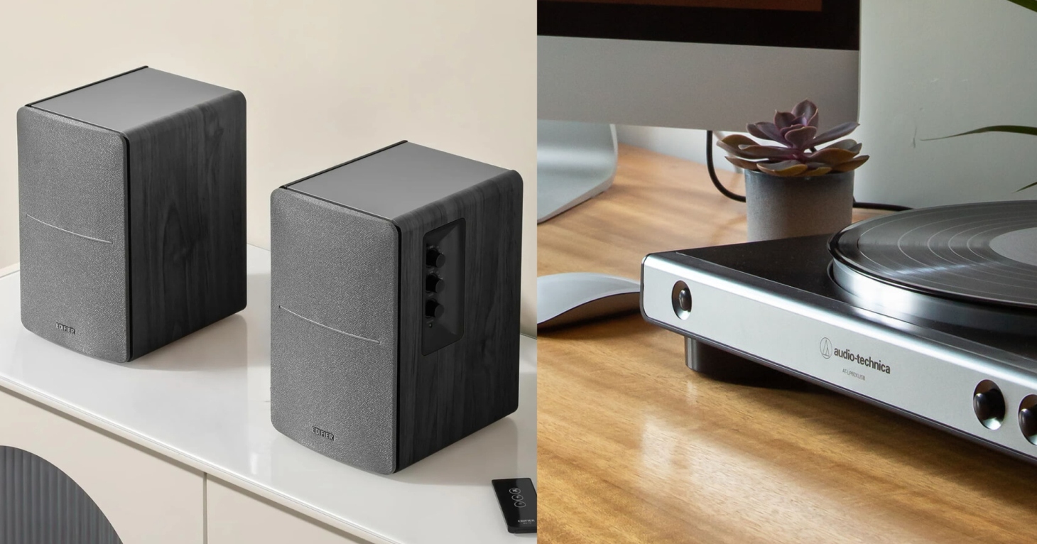 Audio-Technica AT-LP60XUSB turntable and Edifier R1280T speaker pair