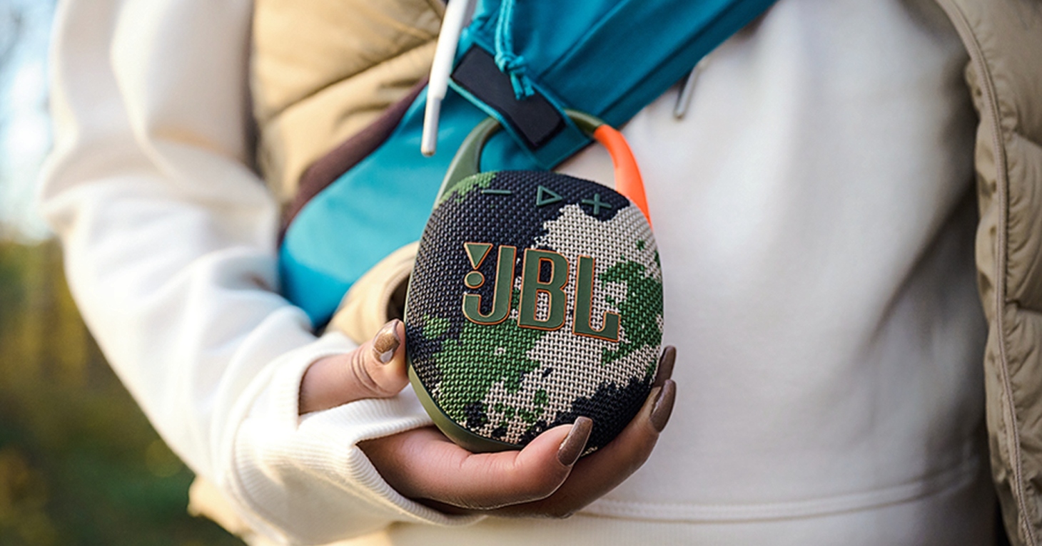 Boasting a compact design and wide carabiner that means you can attach to everything from your bag to your beltloop, the JBL Clip 5 is the ideal small portable Bluetooth speaker.