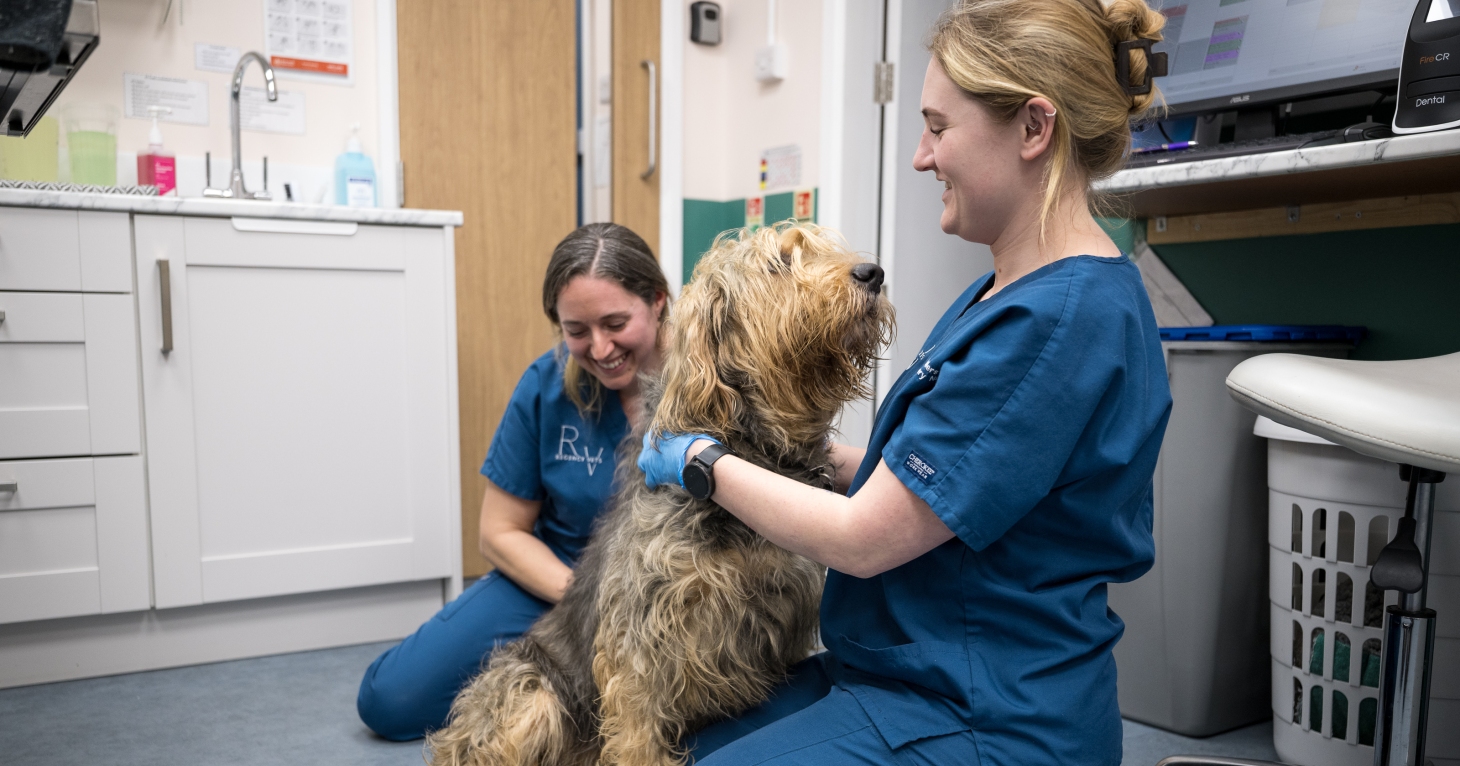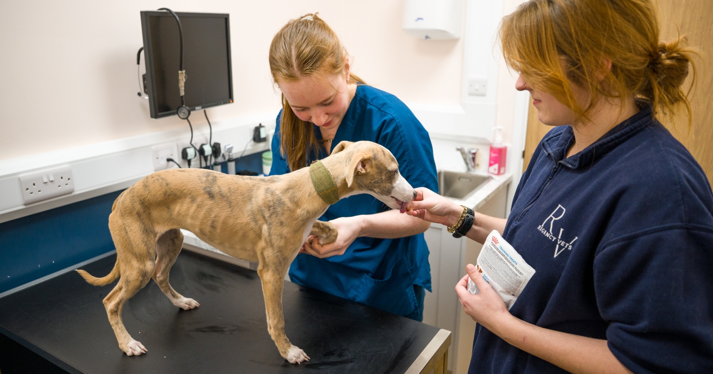 For nervous dogs, it only takes one negative experience at the vets to create anxiety, which can then take up to 17 visits to undo, so we try and prevent that negative experience happening in the first place. We recommend people pop in when they're walking by, just to come and say hello. We've got treats on reception, which the staff will give to dogs who visit with their owners. We've had some really positive results from this method, with dogs who had refused to go into their previous vets but will be dragging their owners in to us to get a treat and a fuss from our reception staff!