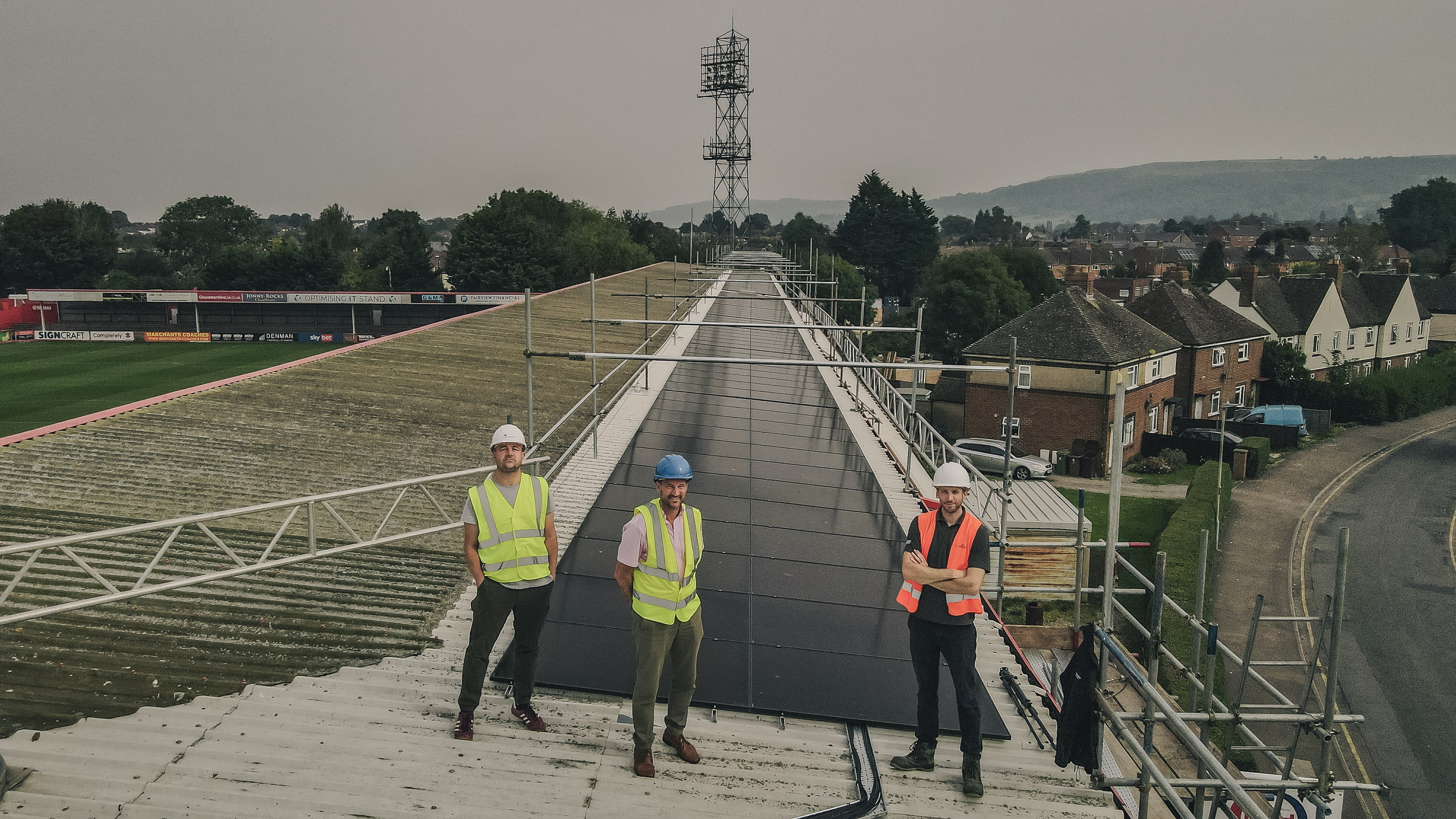 Working hard towards establishing a sustainable and eco-conscious future for the club, the local community and the environment, Cheltenham Town FC contracted Stonehouse-based Cotswold Energy Group to design and install the massive solar panel project, with the work taking a year of planning and eight weeks of building and installation.