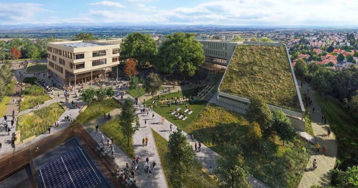 The project team says the 160,000 sq ft IDEA building will provide 'a welcoming, sustainable hub for community, collaboration and innovation where people connect and ideas grow'; and will 'leverage the region’s specialism in security technology, clustering expertise in fast-growing sectors such as AI, quantum technologies, defence tech and communications'.