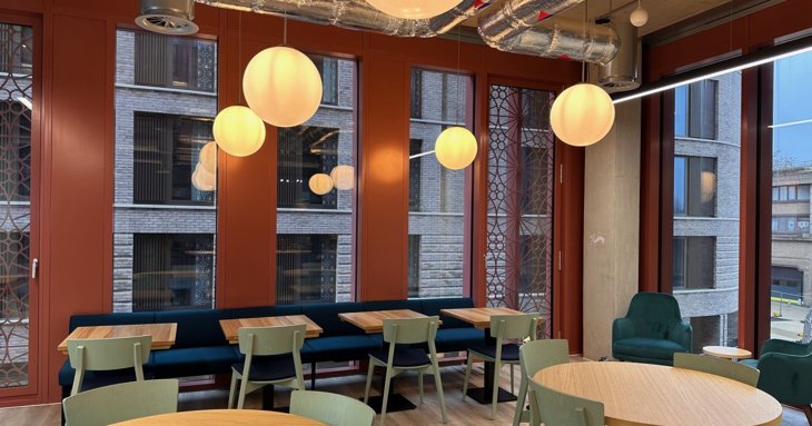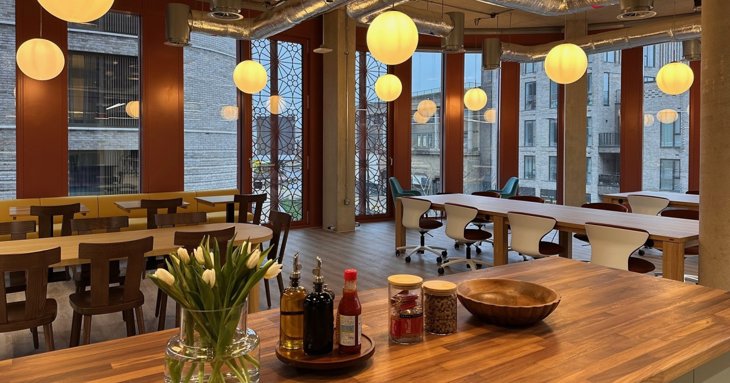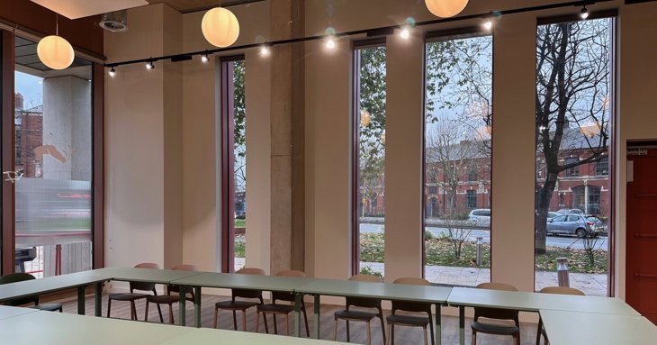 Visitors are welcomed by a friendly site team who sit in the entrance alongside a community noticeboard and small library filled with books on work, idea generation, innovation, creativity, sustainability, business growth and the art of gathering. There's also a kids' corner for little ones, too. A small meeting space is also publicly accessible for free events, pop-up florists or bakeries.
