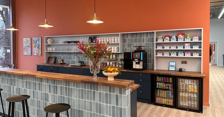 With seating for 50 people, it has the feel of a cafe with its ambient space and open-plan kitchen serving bean-to-cup coffee from Staverton's Ethical Addictions. There are Gloucester Brewery beers and kombucha cans in an honesty bar, too. It's Patch's most informal space which turns into an event space in the evening.