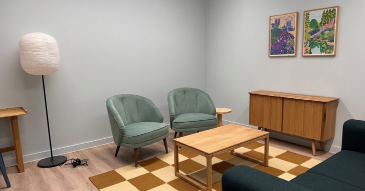 There's a wellness lounge without any screens that can be used as an alternative space for coaching, therapy or interviews.