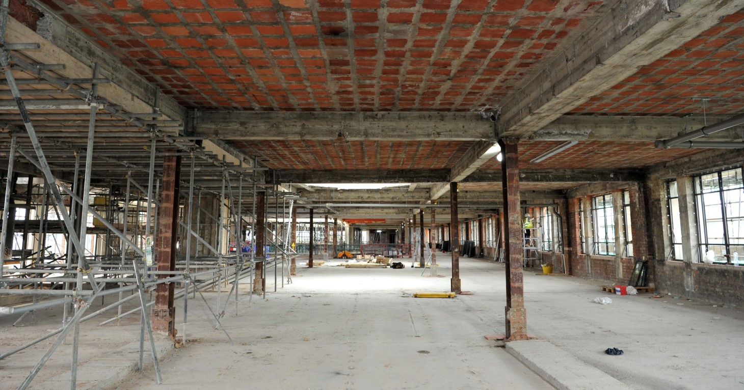 The former shop fittings have also been stripped out, taking the building back down to its shell, with fire protection work currently underway to ensure it meets the very latest safety standards. Work to install new partitions and fittings to create the new teaching, research and learning spaces, as well as offices for staff and the Students' Union; specialist facilities for the Health and Wellbeing centre; a new cafe; and libraries is due to start soon.