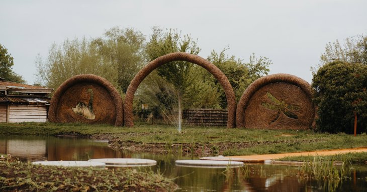 Lush native plantings, woven willow artwork and stylish seating areas add an artistic touch to the space, with each element having been thoughtfully designed to reflect the richness of Slimbridge's wetland environment.