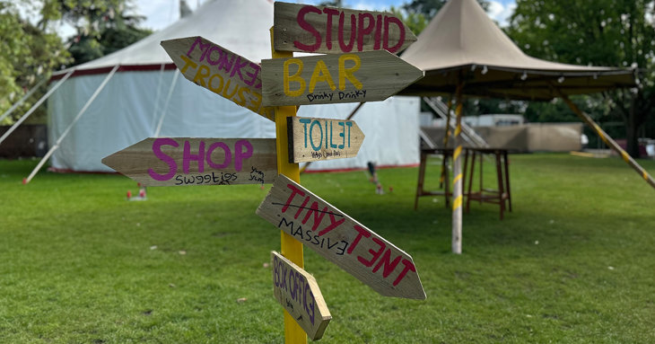 Once inside, the audience is met with a colourful set and great views wherever they sit, with the tiny tent making for an intimate show with plenty of audience participation.
