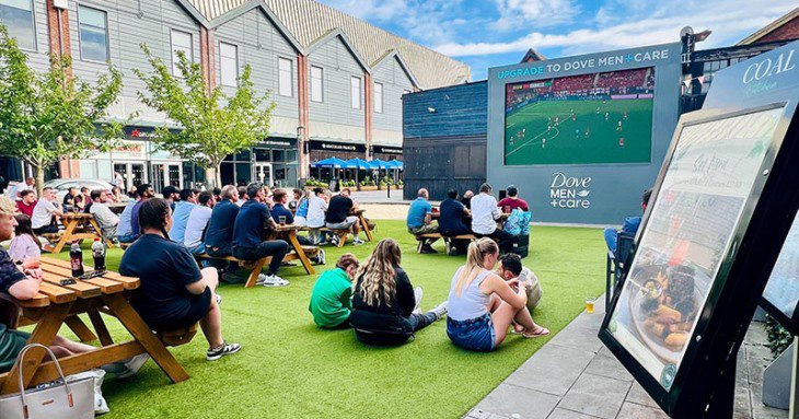Celebrating its Summer of Sports, the big screen is located outside Pillar and Lucy Warehouse at the popular shopping and leisure destination, with tables and chairs to relax in, as well as astro turf where you can roll out a picnic blanket.