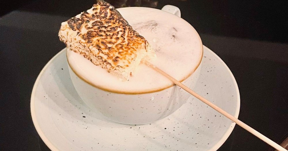 While the Campfire Cooler, which looks just like hot chocolate and is made with crème de cacao, Frangelico, vanilla vodka and Ms. Better’s Bitters Miraculous Foamer, is topped off with a toasted marshmallow on a stick.