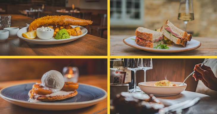 Guests can indulge in comforting starters such as a double Gloucester souffle or seasonal soup, followed by a variety of main course options including steak frites with Cafe de Paris butter or battered haddock with chips and crushed peas.