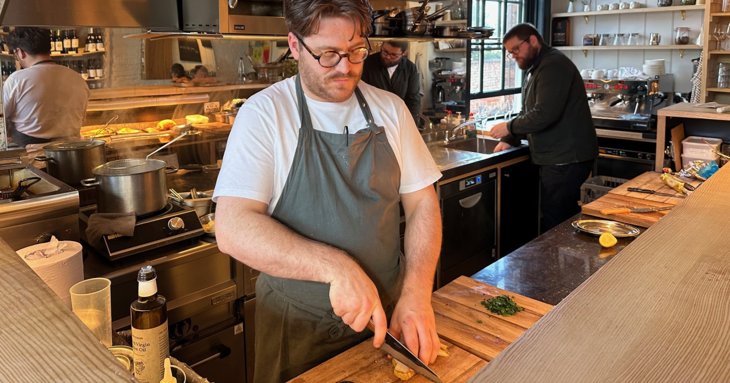 With an open kitchen, chef Fred Page, former head chef of Marle restaurant at Heckfield Place in Hampshire, provides a theatrical backdrop while he's also able to keep an eye on diners enjoying his dishes.