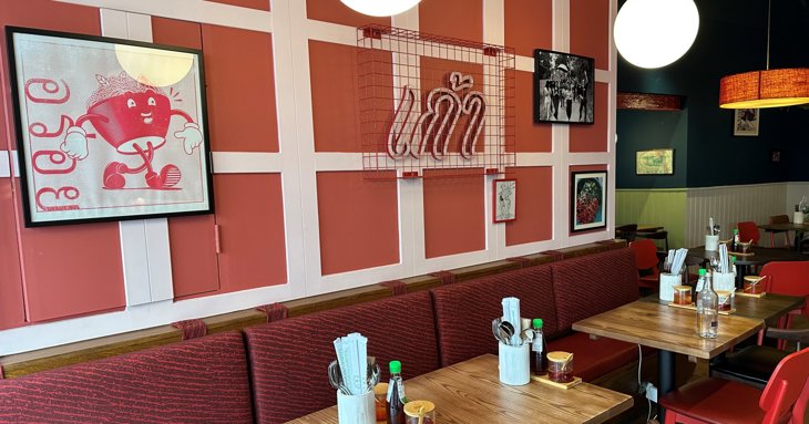 Expect vibrant reds and pinks, deep blues and earthy greens; a modern, central bar to grab your Thai-inspired cocktail; quirky wall art; chilled music; oak table tops; sofa style seating and contemporary chairs; potted plants; sympathetic lighting; and wooden accents throughout.