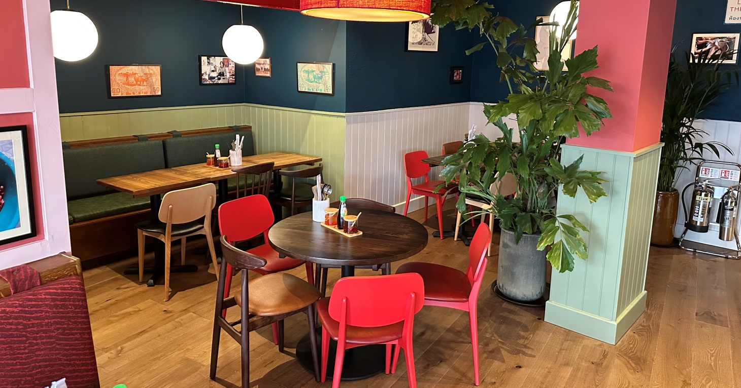 Expect vibrant reds and pinks, deep blues and earthy greens; a modern, central bar to grab your Thai-inspired cocktail; quirky wall art; chilled music; oak table tops; sofa style seating and contemporary chairs; potted plants; sympathetic lighting; and wooden accents throughout.