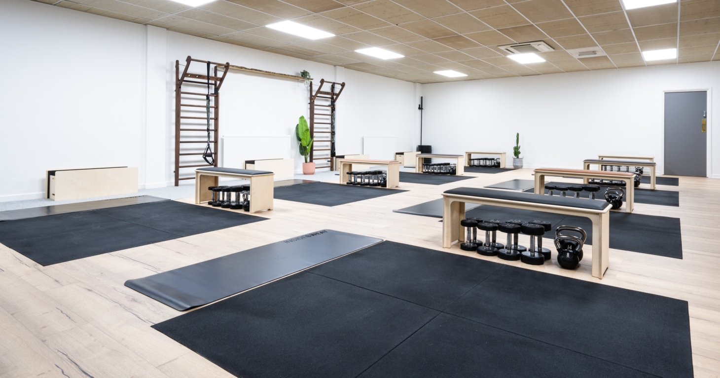 The hybrid approach gym combines personal training classes and at-home fitness, utilising a bespoke functional exercise bench, designed by Jones.