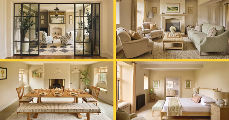 While the furnishings are warm and modern, the property's period features include classic mullion windows, exposed wooden beams and original fireplaces.