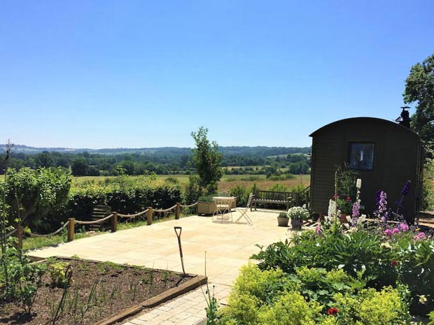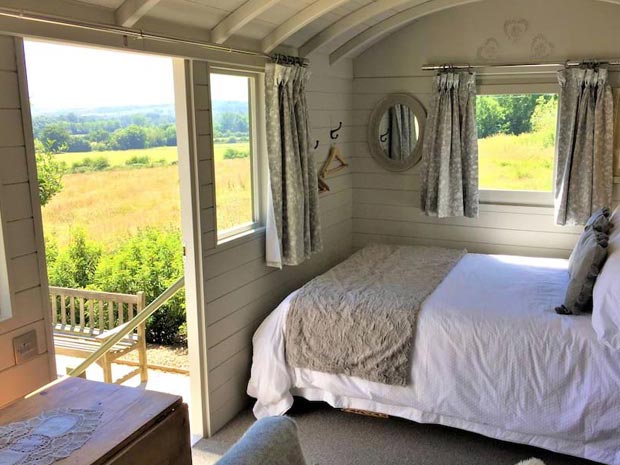 The luxury shepherd’s hut known as Acorn’s Nest looks over the stunning vista of Batsford Arboretum.