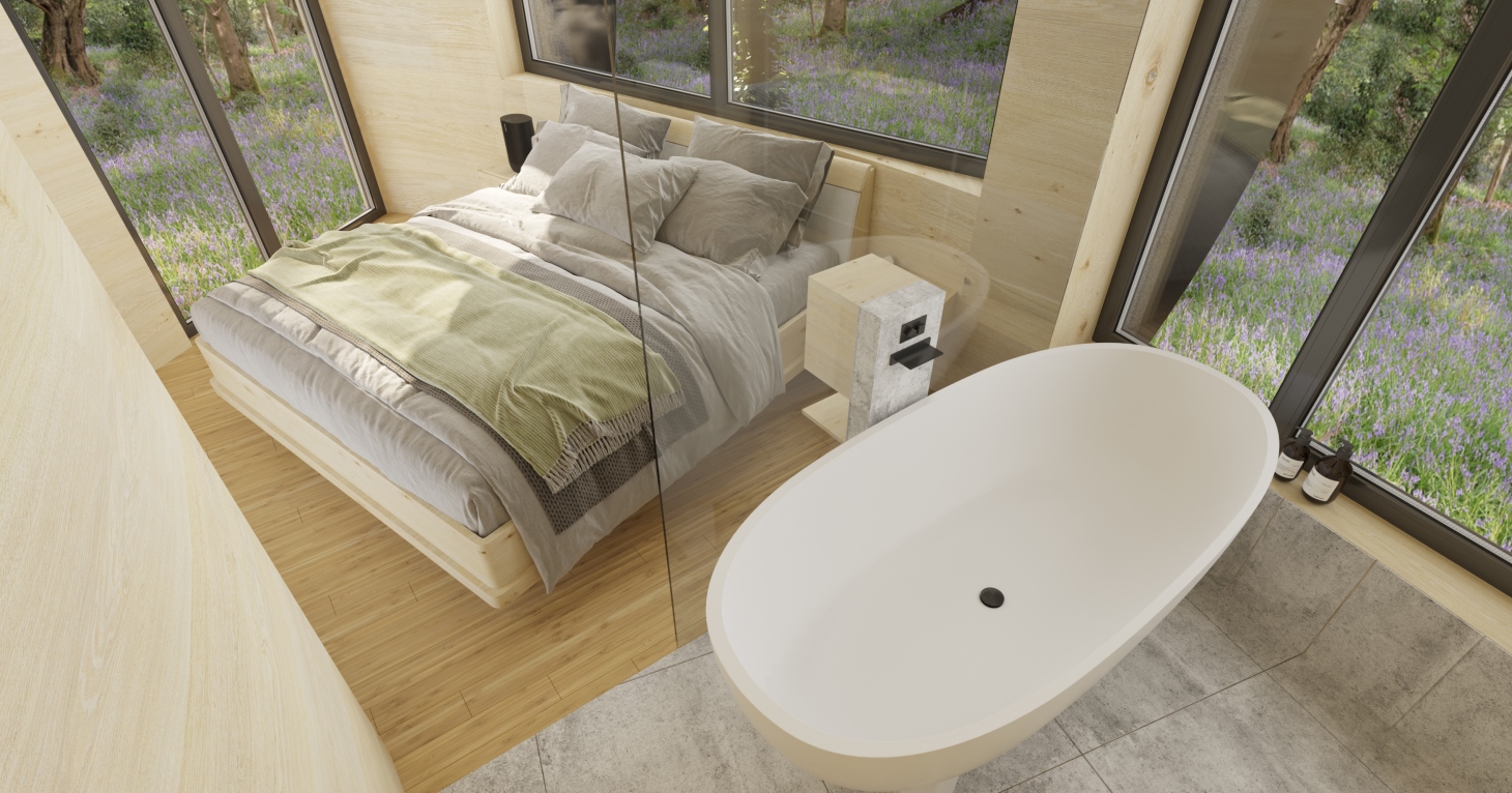 Seven unique properties, encased in timber and glass to emulate nature's curves, are being built within 1,700 acres of ancient woodland in Cornbury Park.