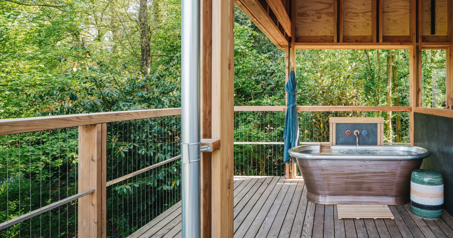 Each wood-clad sanctuary features a dose of luxury alongside escapism, with super king beds, crackling wood burning stoves, a fully fitted indoor bathroom and kitchen and a dreamy outdoor copper bath.